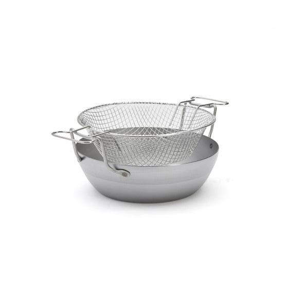 | 28 cm | 8 cm | 4 L | 1,01 kg | Fritadeira em aço carbono 28 cm (x 1) + cesto (x 1) |