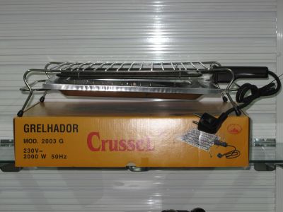 Grelhador 2000W com bandeja inox, ideal para carnes e peixes.