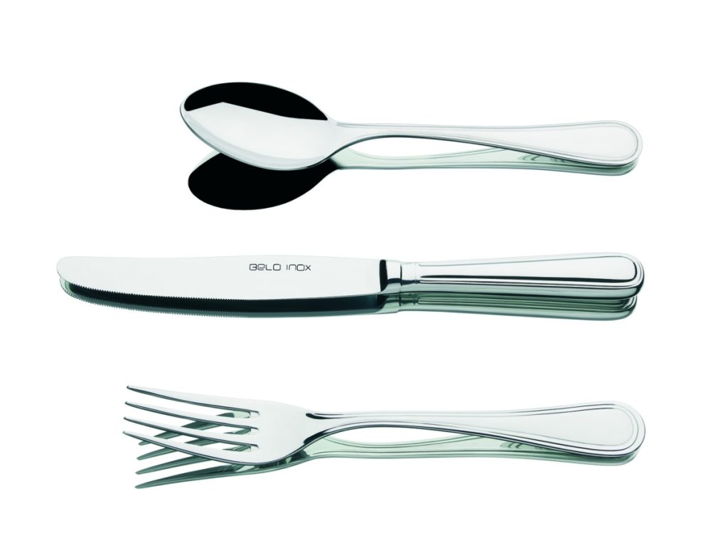 Talheres de alta qualidade, cutelaria nacional, fabricados com as melhores matérias primas. Composição Faqueiro 130 Peças Cabo monobloco • 12