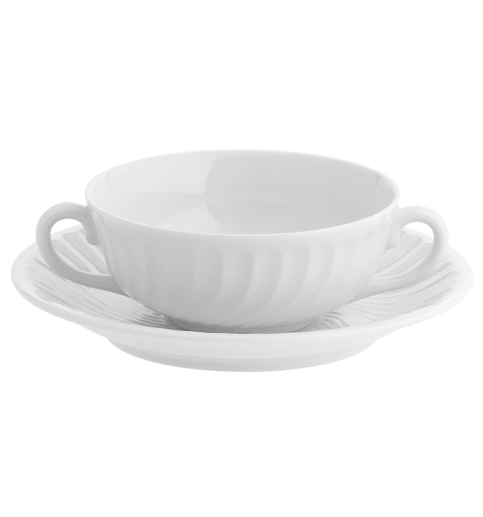 DETALHE DE PRODUTO Chávena Consomé com Pires Sagres. Sagres é um modelo clássico e requintado, com motivos relevados na aba,